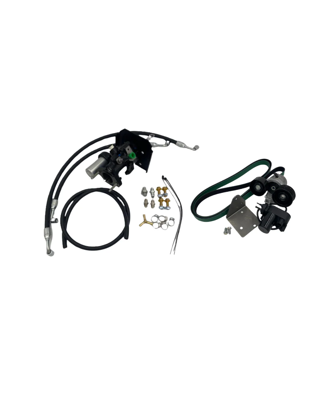 This kit seamlessly integrate with your stock master cylinder and power steering pump. It also allows the use of your original stock brake pedal and firewall mounting provisions. Literally “Bolt On”.